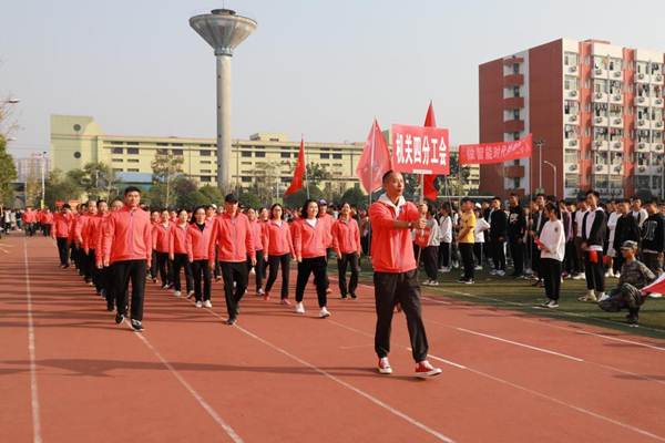 开幕式伊始,国旗护卫队、校旗护卫队、裁判员方阵队、各二级学院方阵队、各分工会方阵队依次入场,队列步伐整齐有力,口号坚定嘹亮。