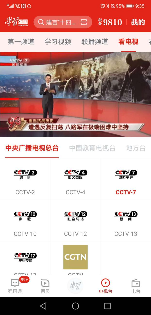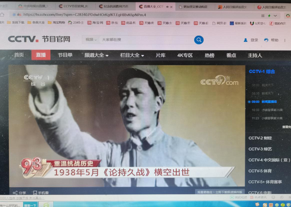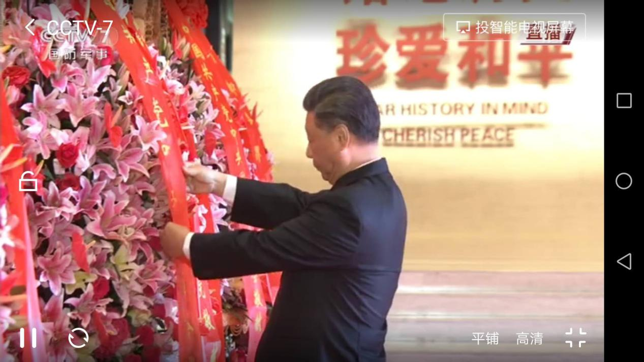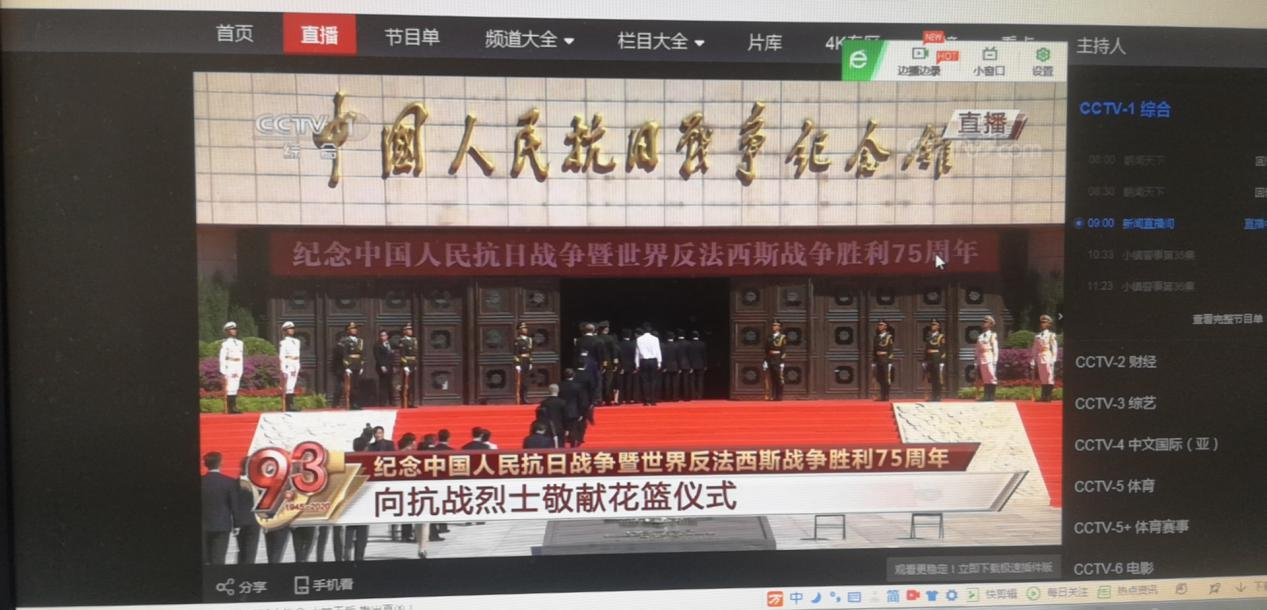 2020年9月3日是抗日战争暨反法西斯胜利75周年,本支部组织全体党员自行登陆学习强国——看电视——国防军事频道,观看直播——习近平总书记为烈士敬献花篮。下图均为支部党员自主学习截图记录。