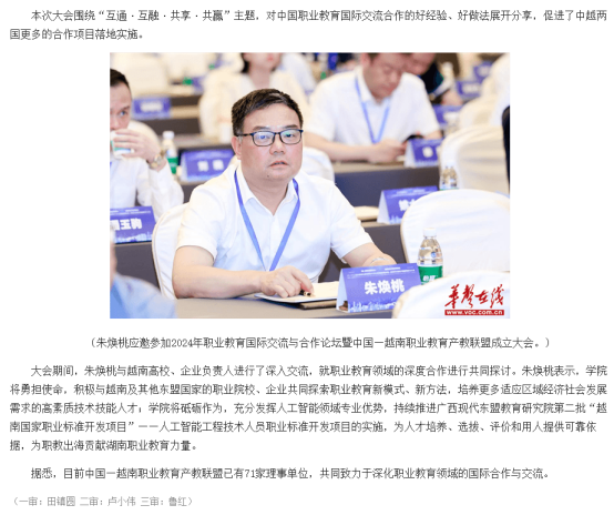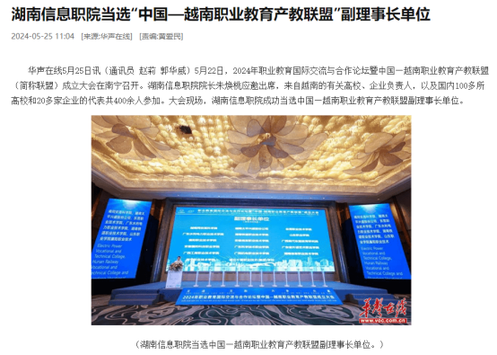 5月25日,华生在线发布《湖南信息职院当选“中国—越南职业教育产教联盟”副理事长单位》