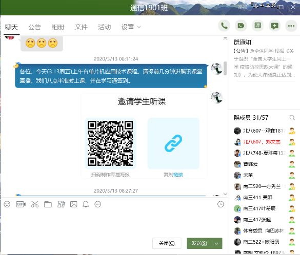 图1 学习通发布通知 图2 班级QQ群组织上课
