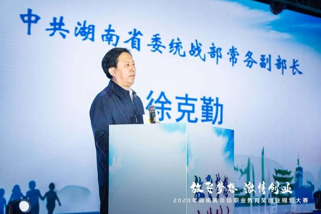 10月11日,2020年湖南黄炎培职业教育奖创业规划大赛精彩落幕。本次大赛由中共湖南省委统战部和湖南省教育厅主办。中华职业教育社党组成员、副总干事李英爱,省委统战部常务副部长徐克勤,省委统战部副部长、湖南中华职业教育社副主任邓焕生,湖南省教育厅职成处处长余伟良出席颁奖现场并为获奖团队颁奖。