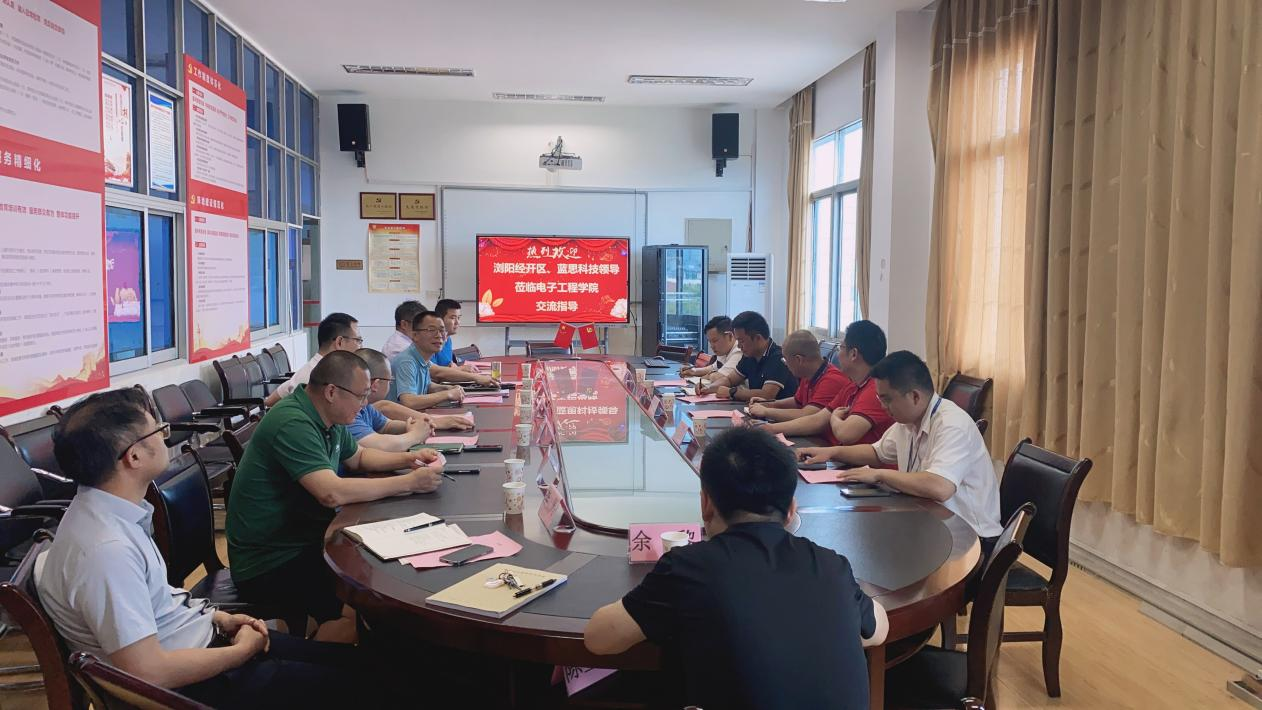6月8日,由浏阳市经开区牵头,蓝思科技集团一行来beat365就人才培养、学生实习、就业、实习实训基地建设等事宜考察交流。校企合作处处长谢哲,招生就业处副处长聂云等学校代表参加会议。