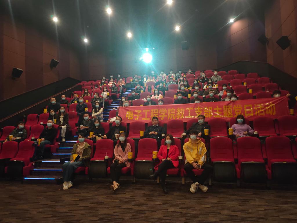 为强化广大党员和群众的政治品格,延续红色血脉,夯实精神之本,熔铸精神之源,引导广大党员干部在奉献中体现作为,在付出中提升境界,在实践中传播文明,以实际行动迎接党的二十大胜利召开,电子工程学院教工党支部特开展“喜迎二十大·奋进新征程”主题党日活动,观看爱国主义题材电影《万里归途》。