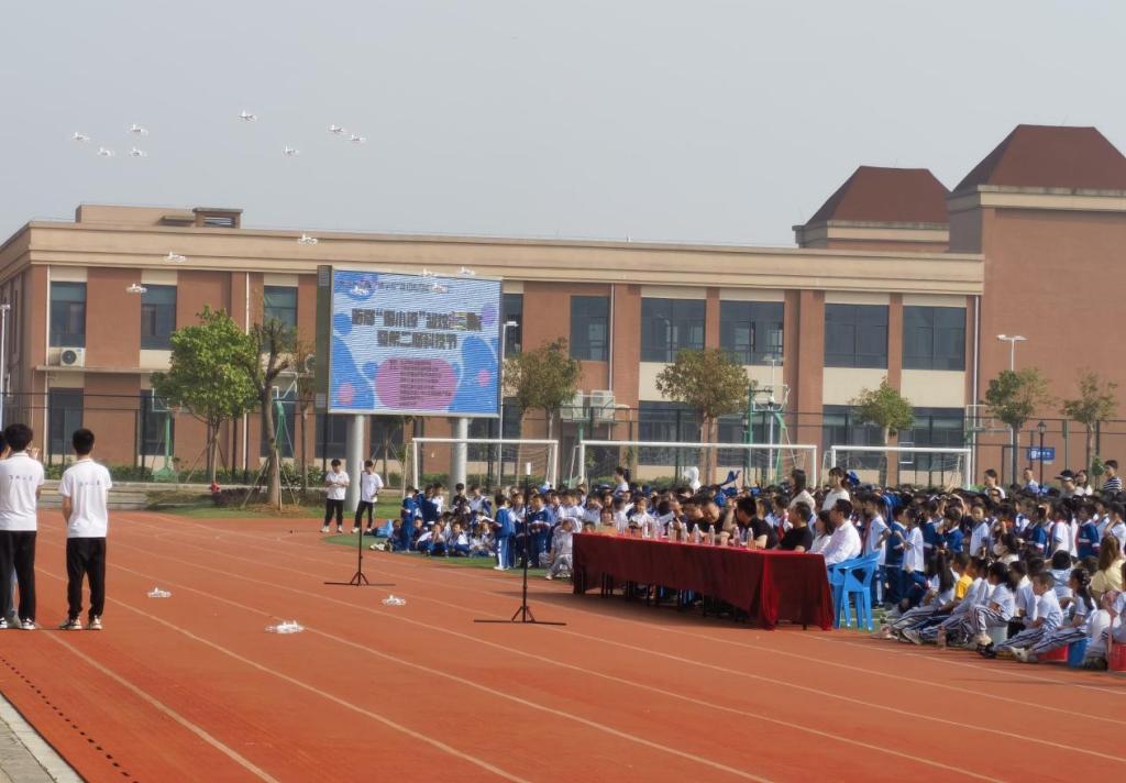 师生观看无人机飞行表演