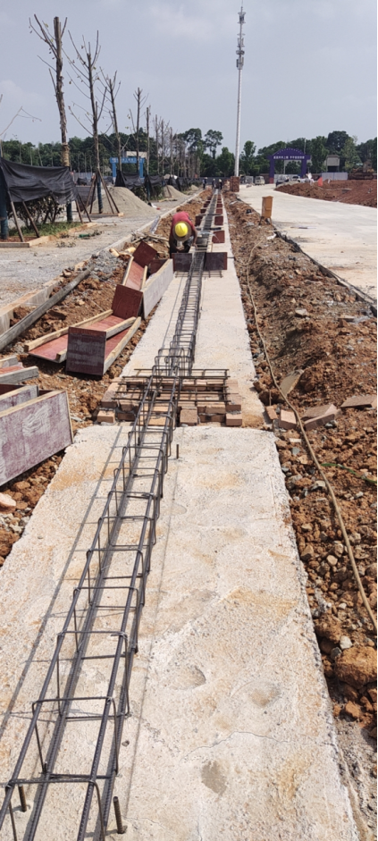 8. 东向高原路围墙完成垫层浇筑20%;