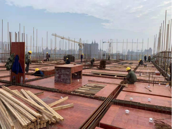 3. 4#栋:南向二层梁板完成,西边连廊过道完成80%,北向二层平板完成70%。(钢筋工、木工、塔司、管理人员共计:85人)