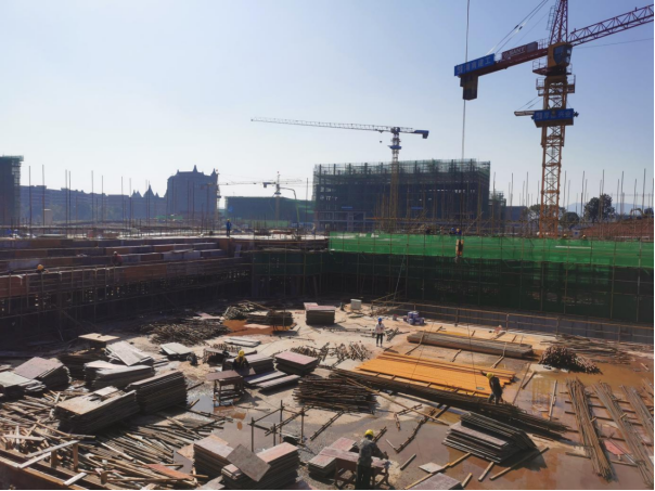 2. 2#栋:一二区三层~标高8.95m支模完成、三四区三层支模完成30%。