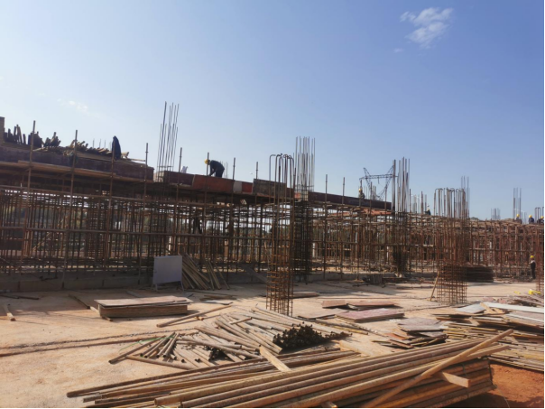 15. 20#栋:一层柱、二层楼板钢筋绑扎。