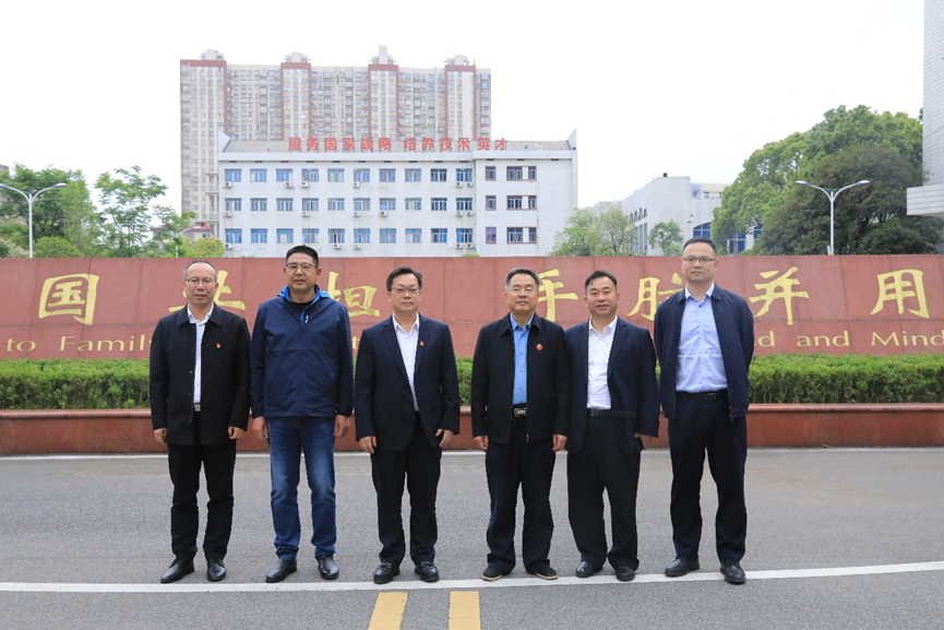 长沙市总工会党组成员、副主席雷光裕(右三)一行与学院党委书记贺代贵(左三)等学院领导合影