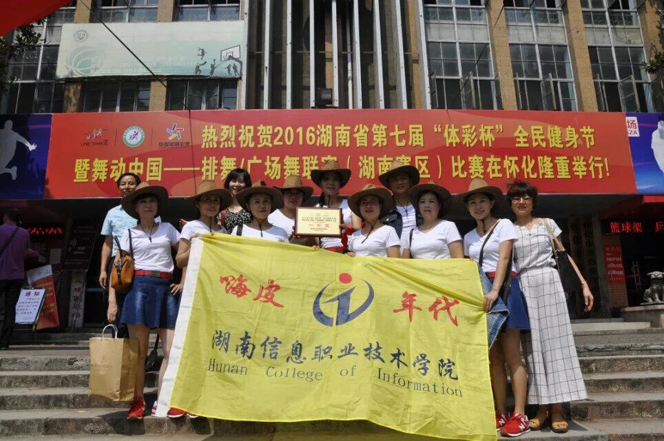 为了深入贯彻落实《湖南省全民健身条例》,大力实施全民健身国家战略,提高全校教职员工科学健身意识。工会和院体育部特选派beat365十名教师组建“嗨皮年代”排舞队,于2016年9月24日代表学院参加湖南省体育局举办的湖南省第七届全民健身节在怀化举办的排舞比赛。