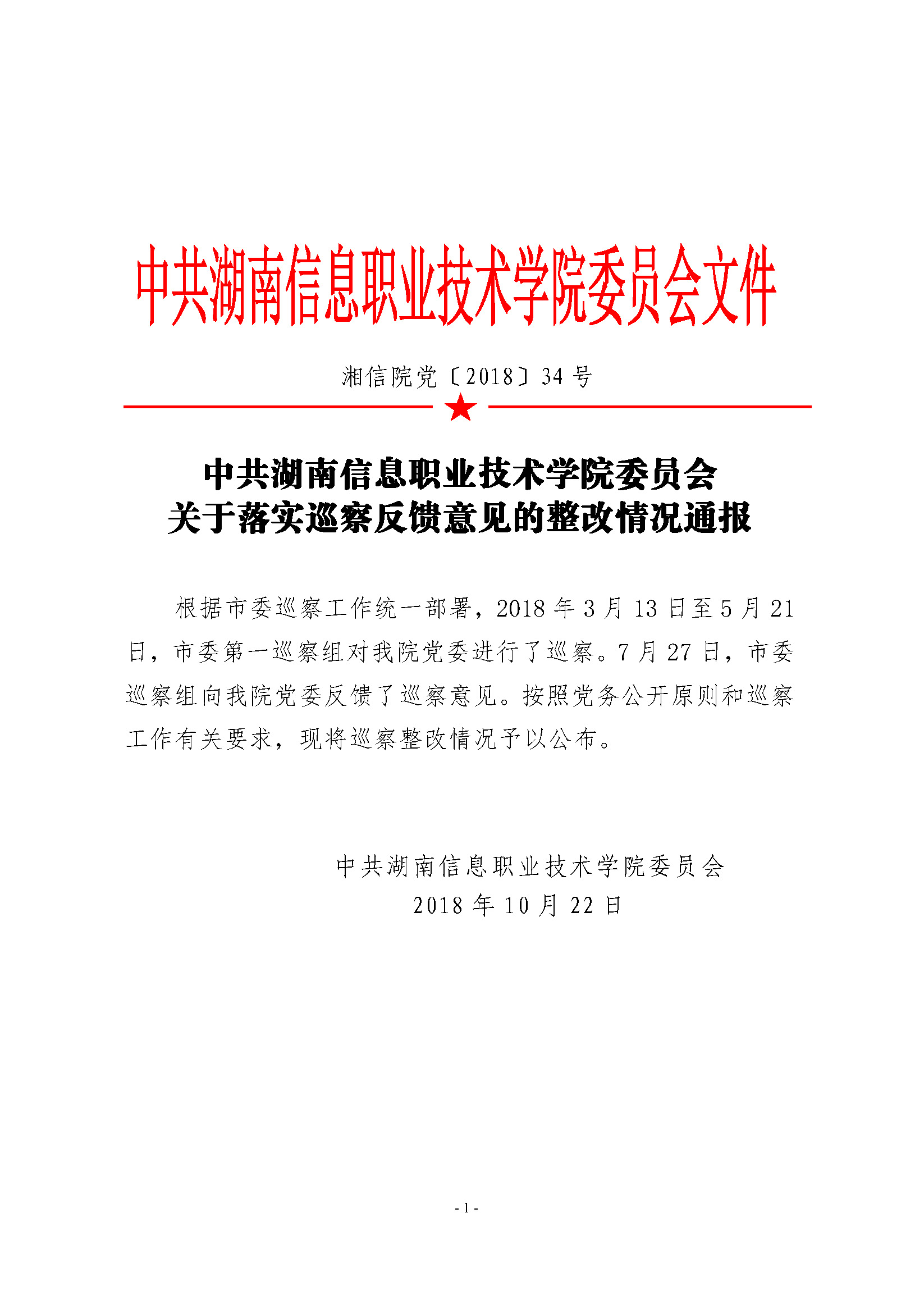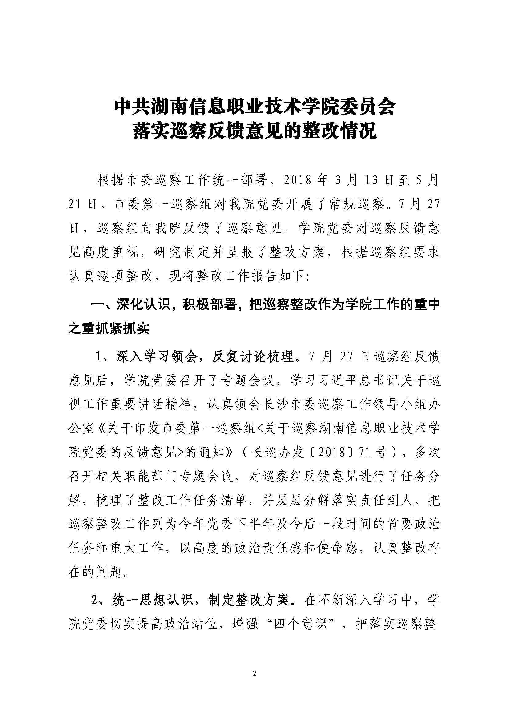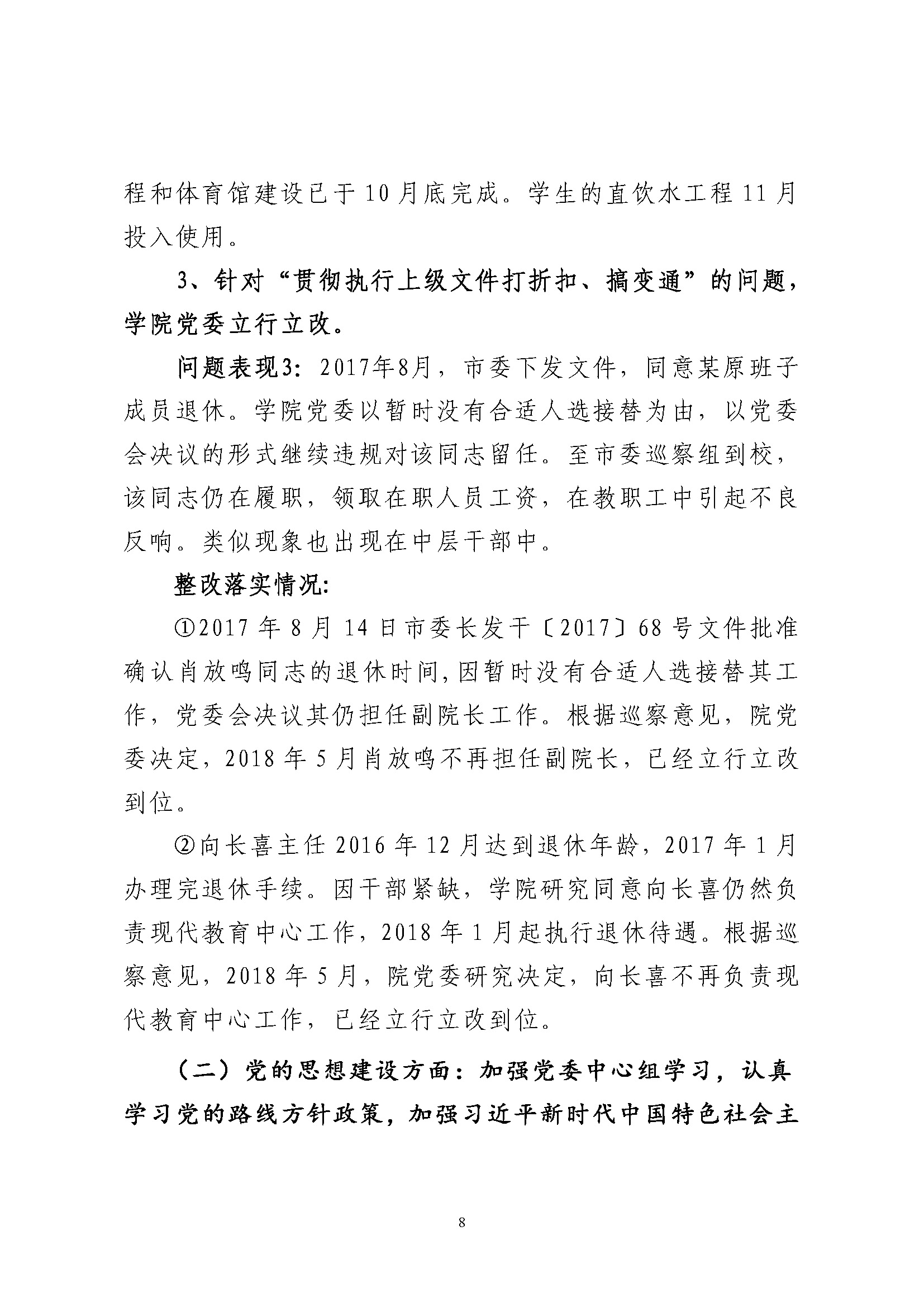 巡察整改情况通报