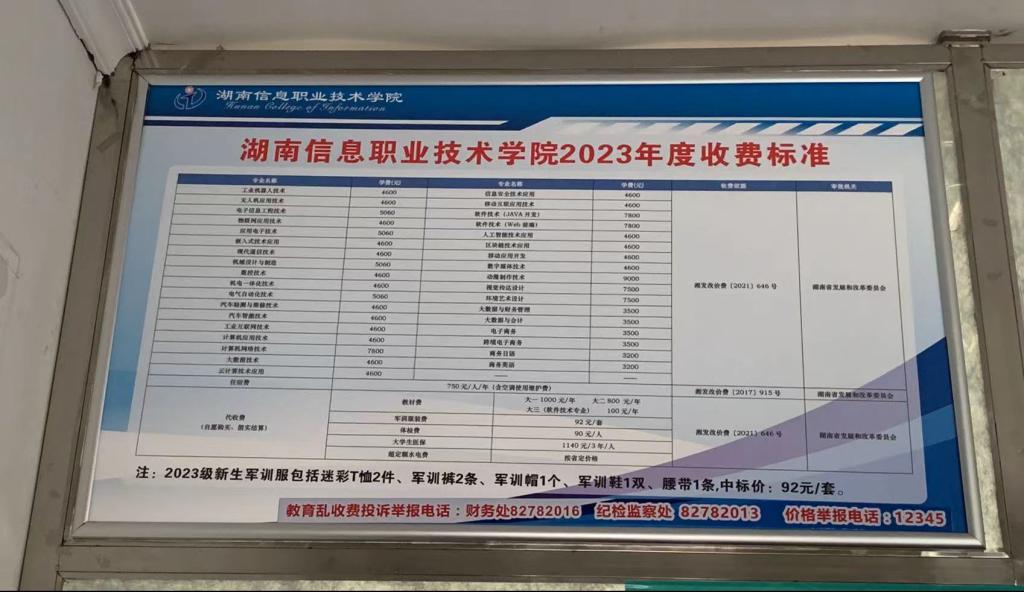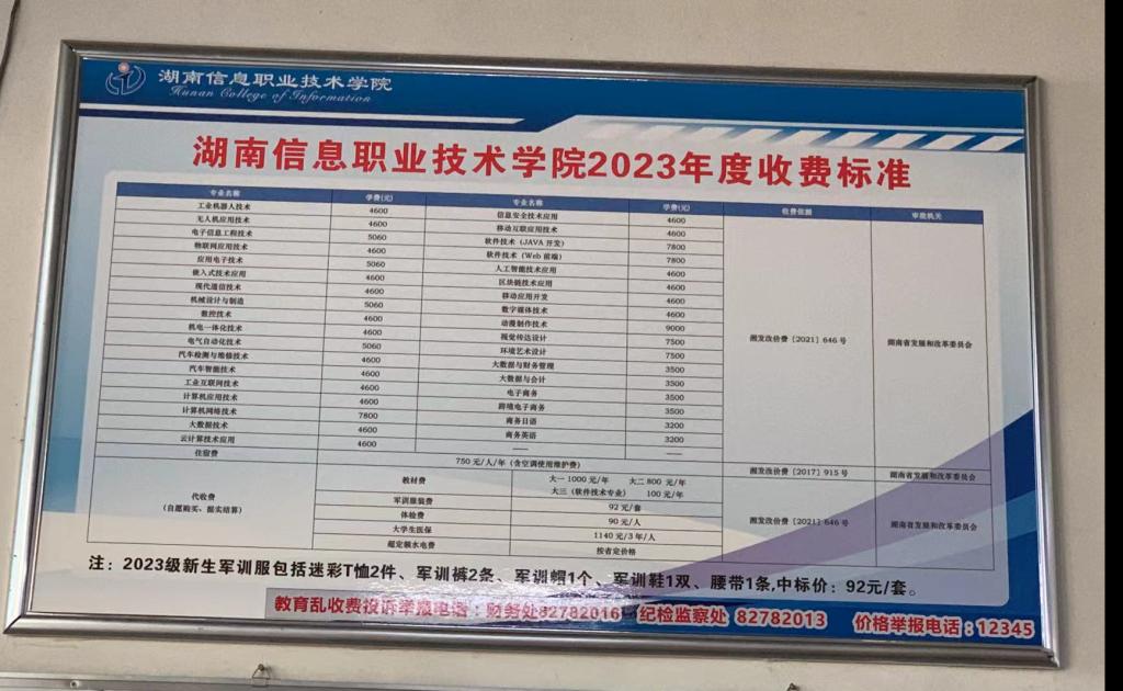大一1000元/年 大二800 元/年 大三(软件技术专业) 100元/年 |