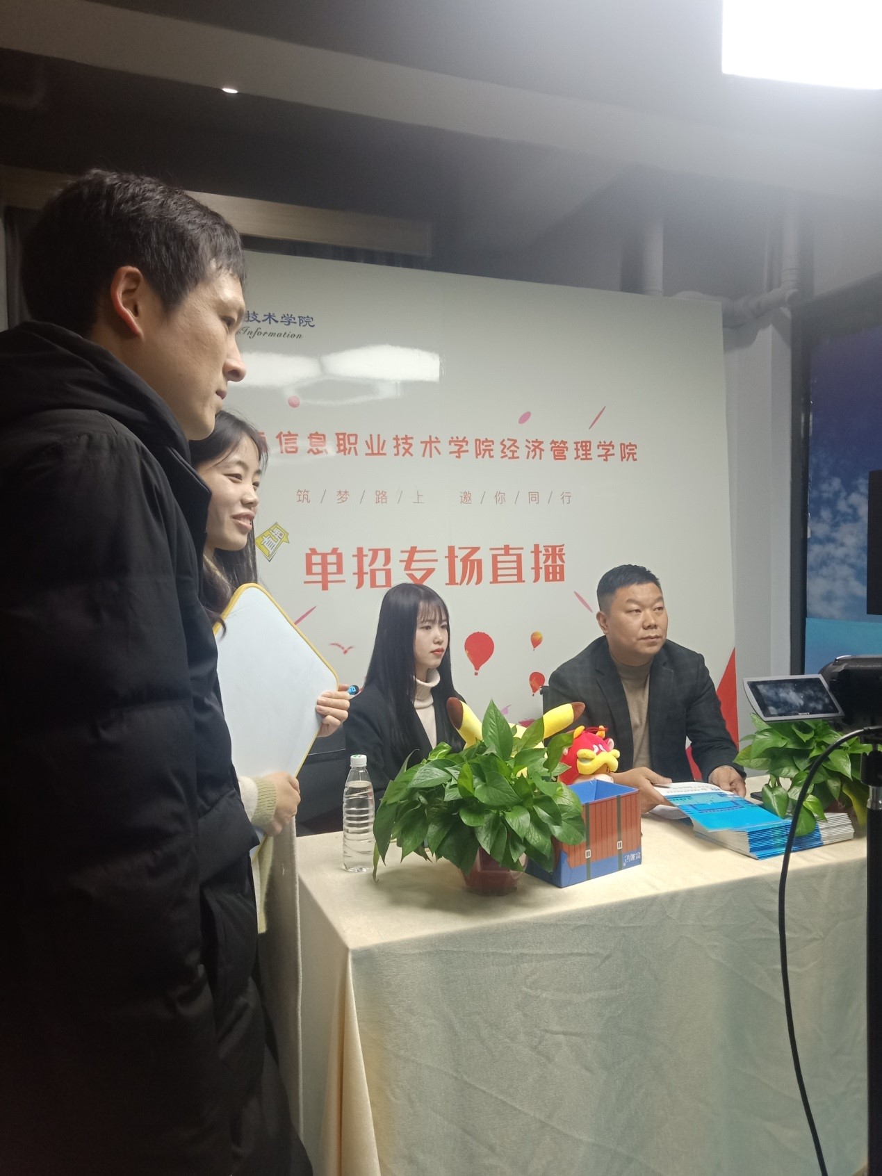 直播内容策划、活动前期宣传、流程把控、设备调试、粉丝互动等环节,均由电子商务专业新媒体营销团队的学生在老师的指导下共同策划执行完成。参与直播学生梁源表示:“通过此次实践操作,不仅加深对新媒体营销课程的理解,更切实提高自己的专业技能,收获颇丰。我们有信心圆满完成‘云端面对面’的单招专场直播。”