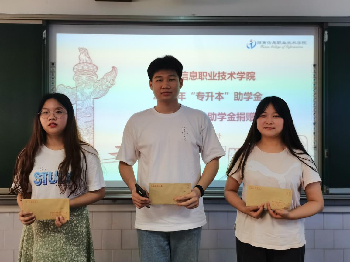 陈浩民、刘志向、吴小雪领取“专升本”助学金