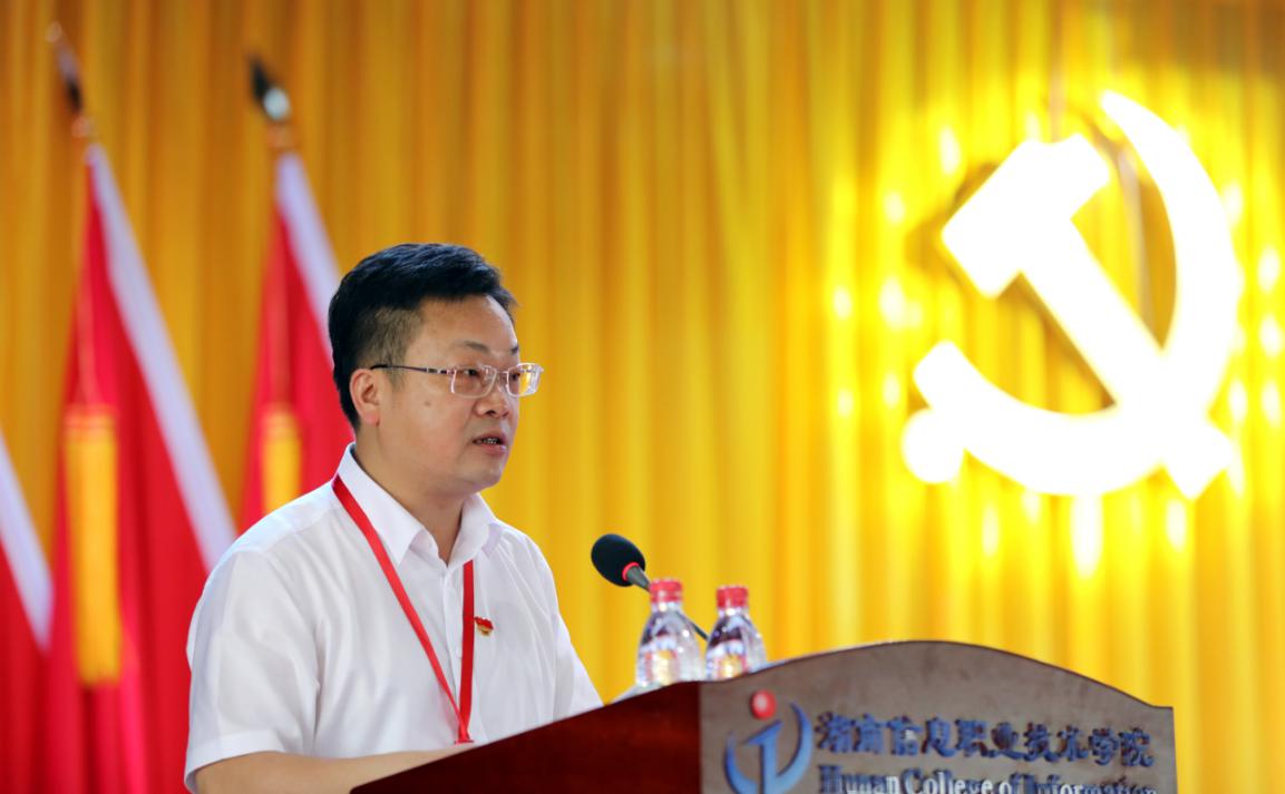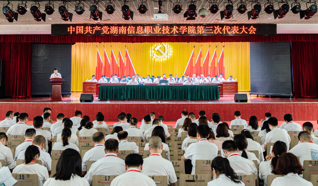 贺代贵同志代表学院第二届党委作了题为《精准对标看齐 奋力攻坚克难为建设特色鲜明的地方性应用型高水平院校而努力奋斗》的报告。他在报告中全面、客观地回顾和总结了第二次党代会以来的工作成绩和经验启示,明确了学校未来五年的发展形势、总体目标、办学思路和今后五年学院的主要工作任务。他强调必须以习近平新时代中国特色社会主义思想为指导,加强党的全面领导,落实立德树人根本任务,在职业教育蓬勃发展中创新务实举措,在服务长沙发展中找准融合方向,在提质培优中增强特色优势,全力推进改革创新,开创学院高质量发展新征程。