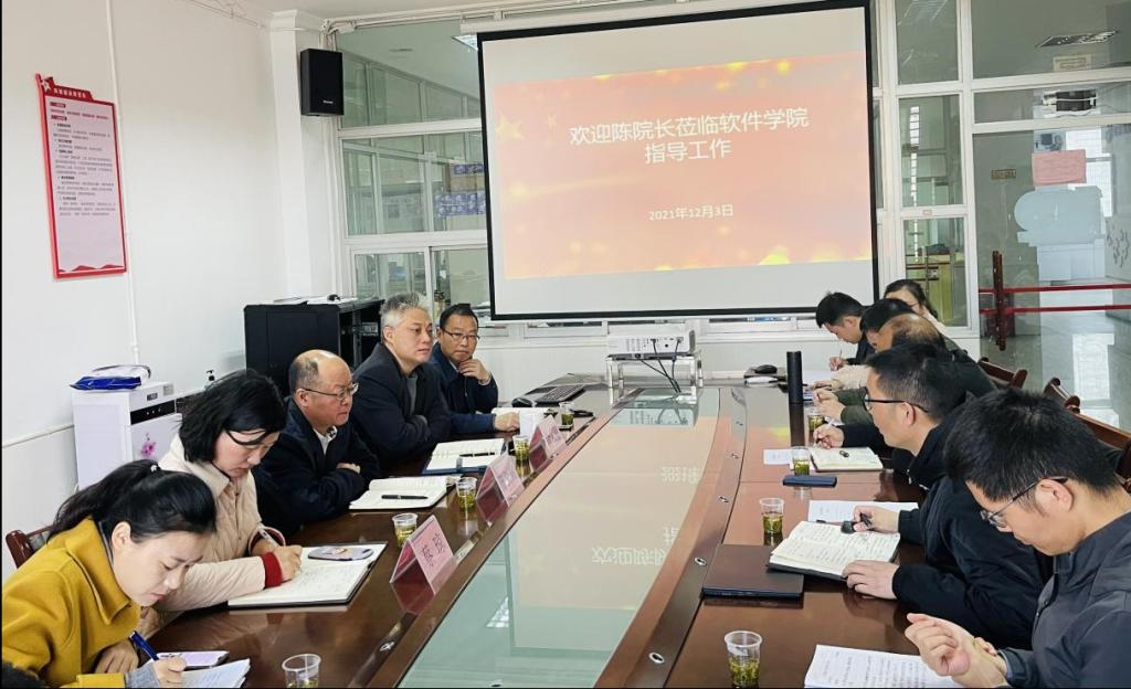 12月3日,学院院长陈剑旄到软件学院调研工作,听取工作汇报并对软件学院教学教研工作提出要求。副院长余求根、软件学院负责人、各教研室主任及教师代表参加调研。