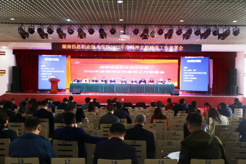 陈剑旄要求认真贯彻落实习近平总书记系列重要讲话精神,以更高的政治站位、更有力的工作举措,推动精神文明建设在新的起点上实现更大发展。他强调,校园精神文明建设要聚焦首要政治任务,推动习近平新时代中国特色社会主义思想入脑入心、落地生根。深入学习贯彻习近平新时代中国特色社会主义思想,以高质量党建引领促进精神文明建设,围绕迎接学习宣传贯彻党的二十大专项行动,开展系列活动,丰富师生文化生活。巩固党史学习教育的成果,持续推进习近平新时代中国特色社会主义思想进课堂、进教材、进头脑。要聚焦培育时代新人,抓好社会主义核心价值观铸魂工程。坚持铸魂育人,贯彻落实立德树人根本任务,强化价值观引导,以“无纸化考试”和“无人监考”等创新举措践行社会主义核心价值观。深耕文化育人,建立健全“一训三风一歌”的校园文化顶层设计,以校园文化建设引领带动学校各项工作健康优质发展。夯实实践育人,持续做好大学生思想道德素质提升工程,开展好“国旗下的名师朝话”、学雷锋志愿服务活动……多措并举实现“三全育人”,培养德智体美劳全面发展的社会主义建设者和接班人。要聚焦市委市政府赋予学校的目标任务与使命,激发全院师生奋进新征程、创造新辉煌的强大精神力量。围绕市委市政府赋予我们的特殊使命和光荣任务,凝心聚力、踔厉奋发,在各项评估、创建与竞赛等活动中,积极展现学院师生勇于创新、务实进取的靓丽风采,全面塑造学院良好社会声誉和办学形象。上下同欲、奋发图强,形成强大的精神力量,营造良好的干事氛围,确保目标任务落实落细落地,在服务“强省会”战略中贡献湘信院力量。