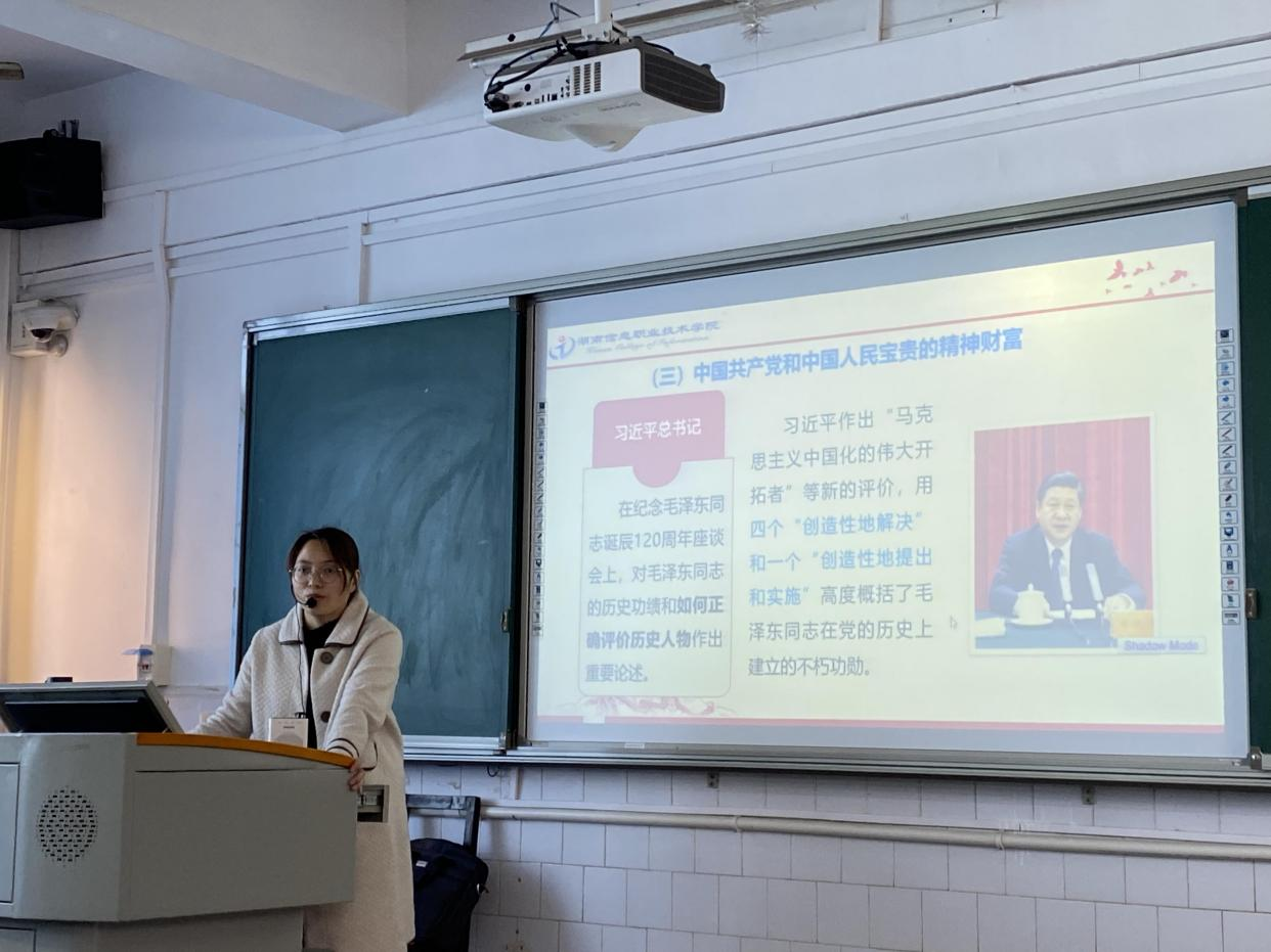 课堂上,老师们精神饱满、准备充分、金句频出,思政课教师金艳深入浅出地讲授《毛泽东思想和中国特色社会主义理论体系概论》,金艳老师邀请学生积极畅谈“你心目中的毛泽东”,同学们认真听讲,互动问答,呈现了一堂精彩且有质量的思政课。金艳老师还精心布置了《湖湘学子说湖南》之《走近湖湘革命先辈》的课外实践活动,让学生在实践中感悟知识、提升本领、增长才干。