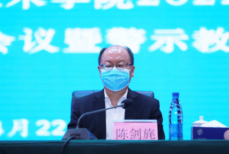 陈剑旄指出,要深刻领会中央关于全面从严治党的新理念新要求,切实将思想和行动统一到中央的要求上来,统一到学院党委全面从严治党的工作部署上来。各党总支、各部门要认真学习、贯彻落实好本次会议精神和部署要求,推动学院全面从严治党向纵深发展;要明确工作重点,确保学院“三大攻坚目标”落地见效;要强化责任担当,落实立德树人根本任务;要坚守底线思维和作风锤炼,把全面从严治党工作与学院中心工作结合起来,做到干部廉洁从政、教师廉洁从教、学生廉洁修身。