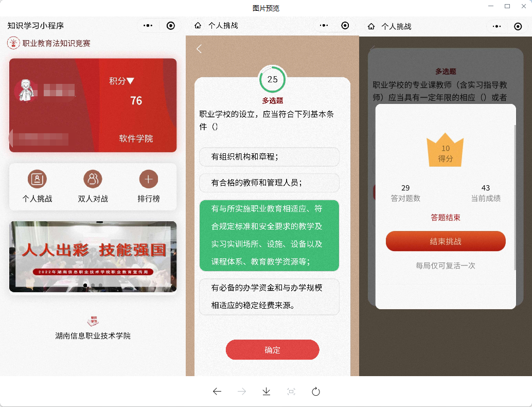 “新职业教育法”知识学习竞答小程序