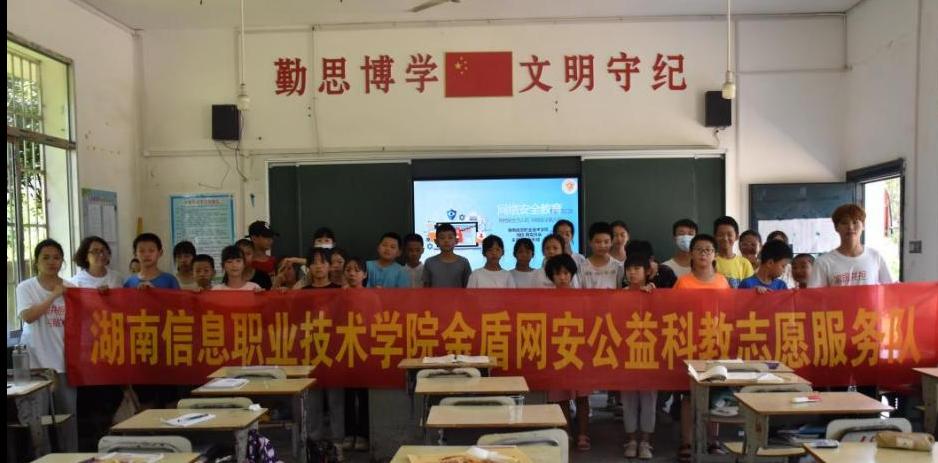 筑牢网安基石,争做网安卫士。据悉,湖南信息职院金盾网安公益志愿服务队专注于服务网络安全领域,每年定期在长沙市高桥镇维汉村小学开展网络安全活动,提升小朋友们的防诈骗意识,同时增强志愿者的服务交流能力。