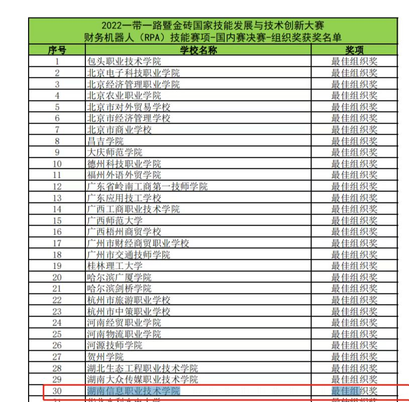 7月30日,2022一带一路暨金砖国家技能发展与技术创新大赛财务机器人(RPA)技能赛项国内赛决赛圆满落幕。来自beat365经济管理学院的杨旺同学(指导老师:陈丽萍、何婷),从全国20个省(市、自治区)200多所职业院校的1000余名选手中脱颖而出,斩获全国一等奖(全国排名第四),学院获该项赛事的最佳组织奖。