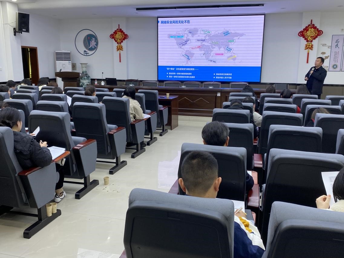 廖老师主要从网络安全形势、上网安全、办公安全等方面进行讲解,利用日常中存在的网络安全真实案例,生动细致地分析问题发生的原因及造成的危害,并对可能存在的网络安全风险和问题,提出具体应对措施。
