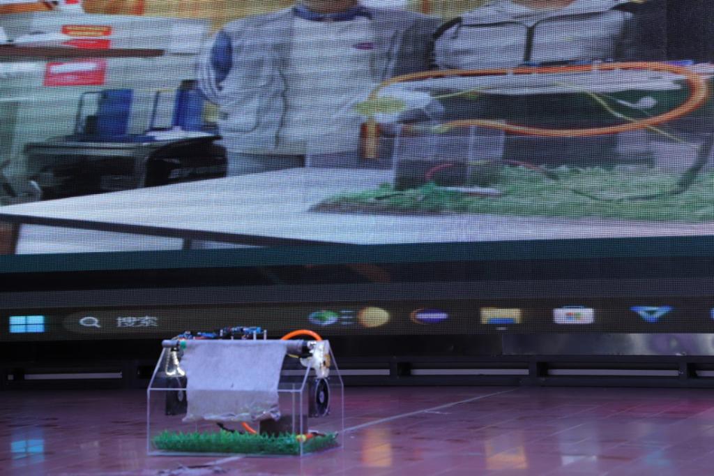 2023年3月21日下午,beat365“挑战杯”大学生课外学术科技作品竞赛在多功能报告厅举办。来自各二级学院的项目小组在赛场上全方位展示着团队的成果,“我们的多功能六轴机械臂小车可行走可通过机械臂模拟人的手臂对物品进行抬升、放下以及抓取等功能,可以实现多种场景的搬运、抓取、码放。”“我们设计的基于数字孪生的智慧农业农情监控系统利用关键技术设计农情监控系统,实现了在农业生产过程中虚实结合、以虚控实的智能化与数字化管理。”“我们制作的遥控履带消毒车采用坦克式履带底盘,可进行超宽面积喷雾,均匀喷洒消毒液。”……各类科技作品让人应接不暇,现场俨然成为了一场现代科技式“八仙过海”。