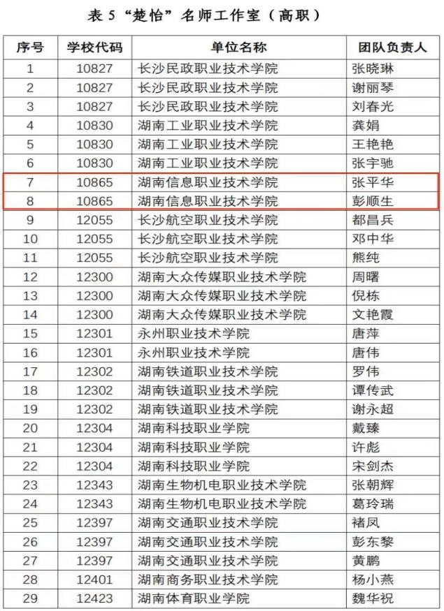 2023年职业教育“楚怡”行动高水平教师队伍建设项目立项公示