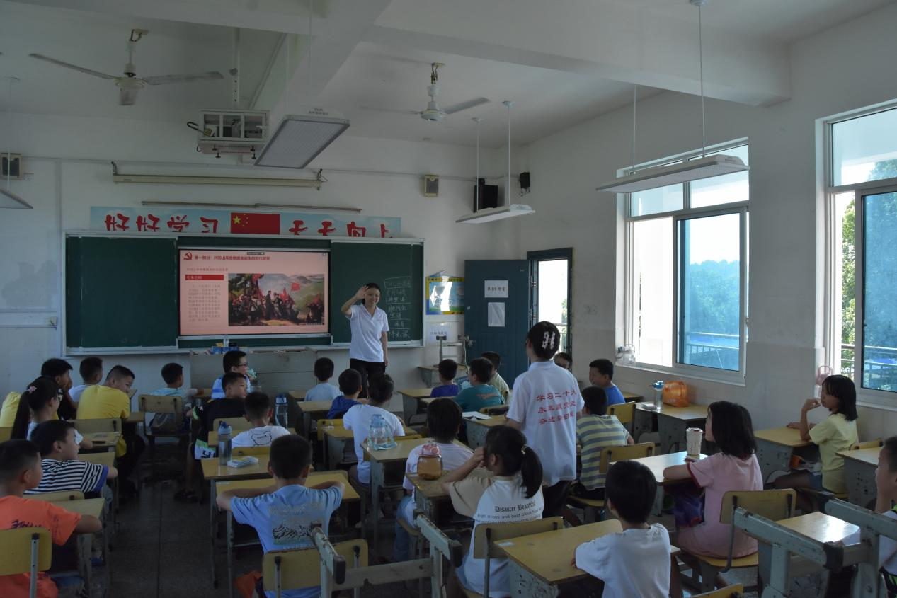 7月12日清晨,朝阳照进路口镇中心小学暑期实践班的教室里,一堂特殊的井冈山精神宣讲课开始了。什么是井冈山精神?革命斗争的星星之火,又是如何形成燎原之势?在新时代,井冈山精神又放射出什么样的时代光芒?如何把井冈山精神宣讲清楚,又能用小学生喜闻乐见的形式让他们记住这节特殊的宣讲课?这对湘信学子来说是一个很大的挑战。