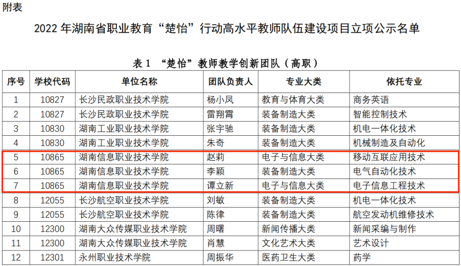 湖南省职业教育“楚怡”教师教学创新团队
