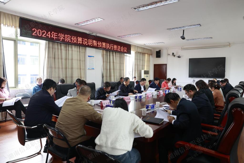 为推进2024年预算顺利执行,全面客观做好2024年财政预算绩效自评工作,提高预算管理水平和资金使用效益,4月8日,学院召开2024年预算说明暨预算执行推进、财政预算绩效自评工作会议,院长朱焕桃,副院长余求根,纪委书记姚庆武出席会议,各部门负责人、二级学院院长参加会议。会议由副院长余求根主持。