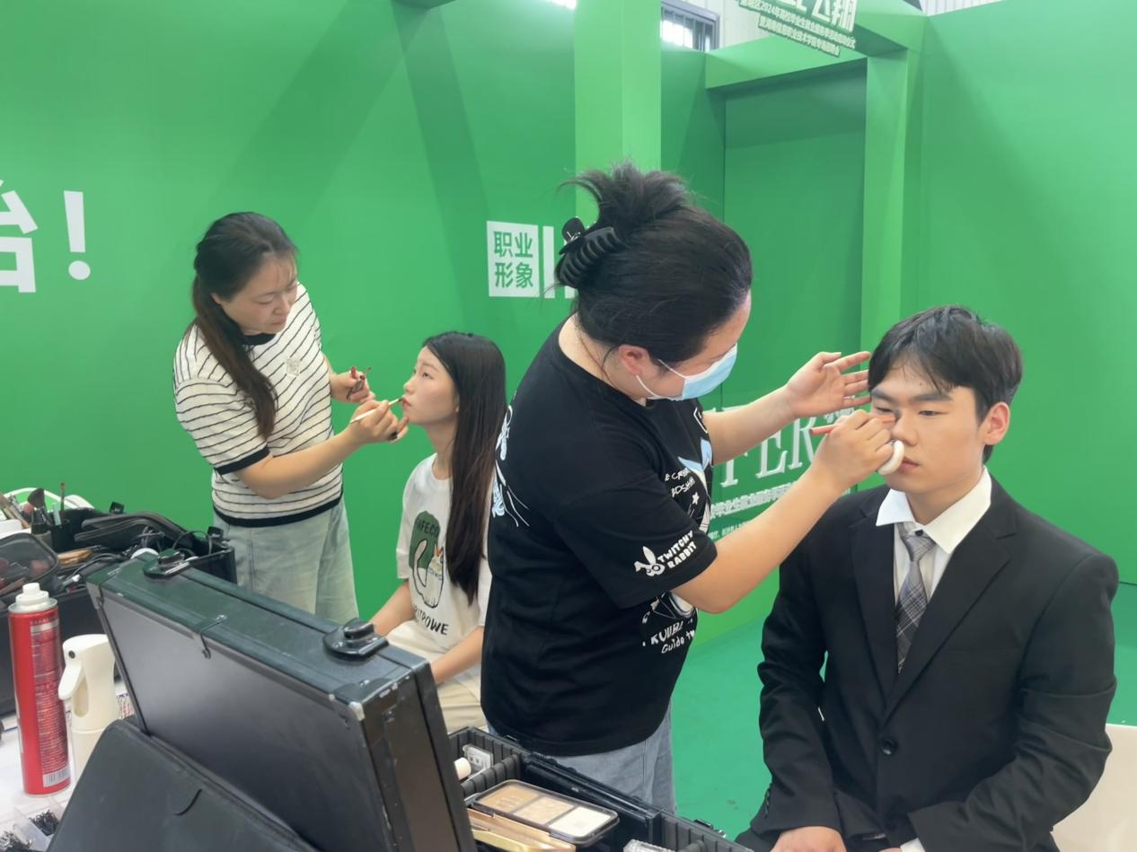 在形象塑造区,形象管理咨询师正在为学生进行形象改造