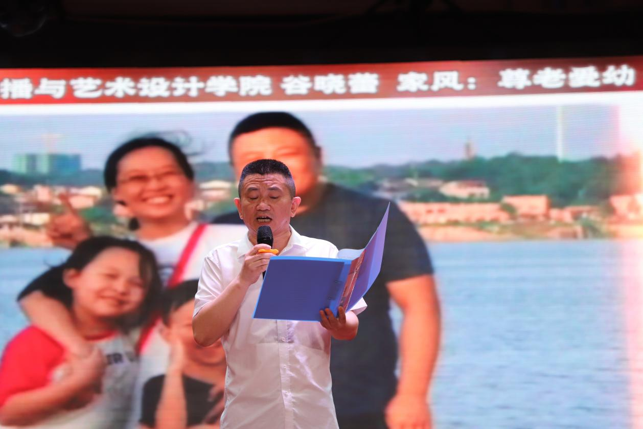 在湖南信息职院第一届“廉洁文化宣传月”闭幕式活动暨廉洁文艺作品展演活动中,“晒全家福 亮好家训 讲家风故事”活动一等奖获得者教师代表现场分享,把母亲的叮咛嘱托“勤劳节约才能让生活越来越好”化作感人的故事,引发现场观众的共鸣。