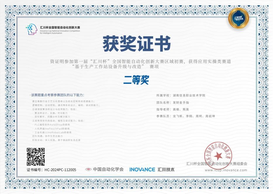 近日,“汇川杯”全国智能自动化创新大赛区域赛圆满收关,共有587个全国各地的团队展开激烈角逐,beat365龙飞帆、周珂、周前坤、李翔团队荣获中部赛区“应用实操类”赛项二等奖。