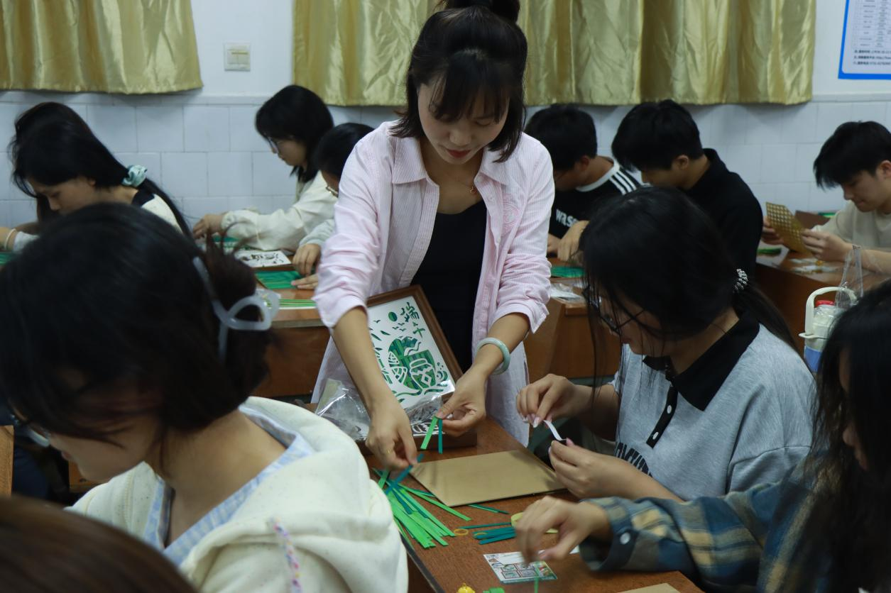 党员教师指导学生进行端午文化手工制作