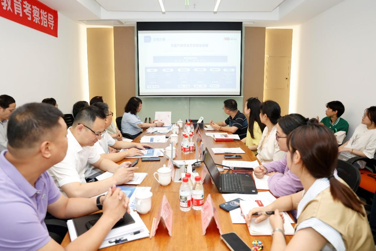 朱焕桃一行对2家企业的发展历程与核心技术成果进行了解。数字灵动董事长邓庭波介绍了公司在密码安全、检测技术等领域的优势,并特别提到:“贵校王建宇在校期间受邀与我司组建团队在全省第一届攻防演练中获得第一名的好成绩,充分体现了学院的人才培养质量。”