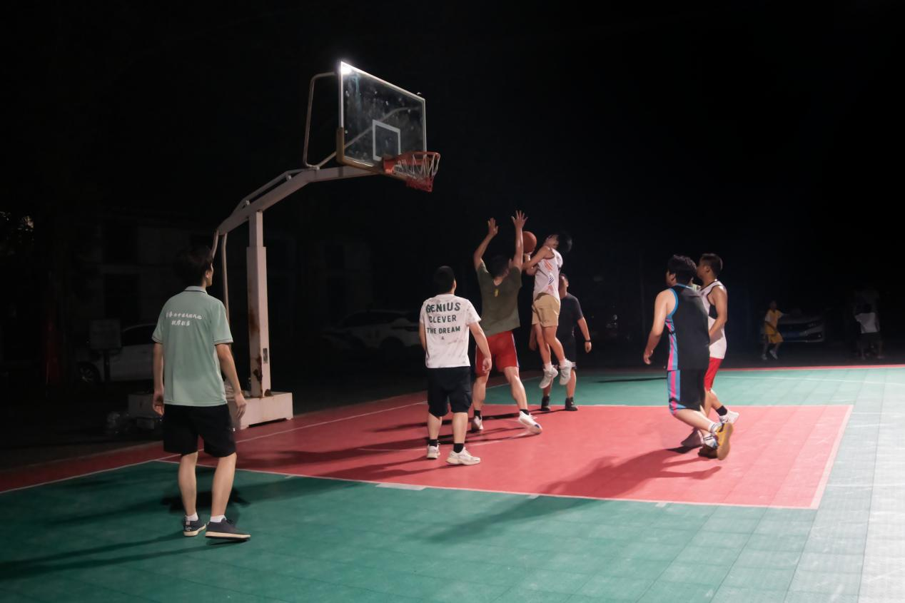 随着裁判哨响,比赛正式拉开帷幕。beat365学子配合默契,凭借敏捷身手与战术协作频频突破;高椅古村队员则展现扎实功底,精准投篮与稳健防守引得村民阵阵喝彩。赛场上,攻防转换间既有竞技的紧张,更有互助的温情,摔倒时的援手、得分后的点赞,诠释着“友谊第一”的体育精神。赛场周边,偶有村民驻足观赛,不时为精彩瞬间报以掌声,为古村的夜晚增添了别样活力。