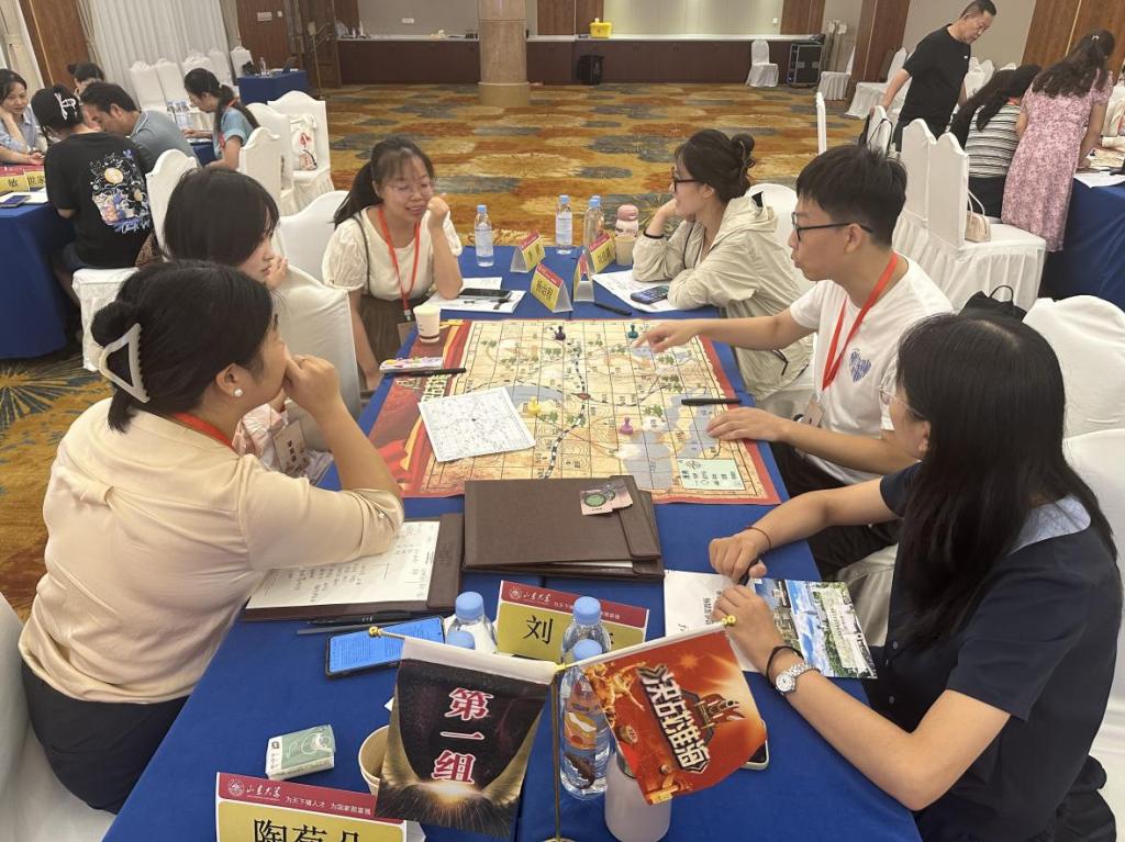 在“决战淮海”党性教育与管理融合红色模拟沙盘环节,山东大学刘洋教授围绕《重温淮海精神 传承红色基因》对淮海战役进行历史解读,带领老师们认识沙盘与规则讲解并进行沙盘推演和互动。通过现场沙盘道具、角色卡、作战地图等,快速将老师们带入战火纷飞的体验,在沙盘的推演过程中,共同感悟“听党指挥、依靠人民、团结协同、决战决胜”的“淮海战役精神”。