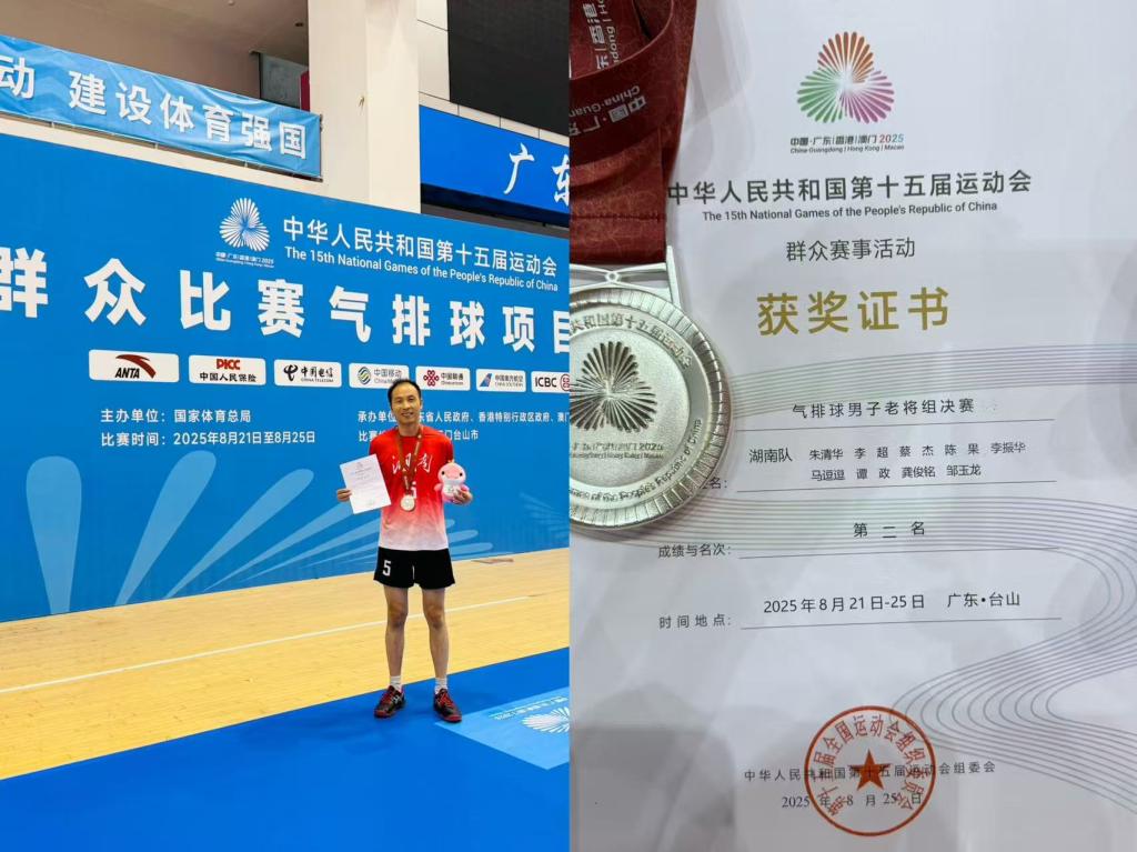 近日,在第十五届全国运动会气排球群众赛事中,湖南省体育局派出的五支代表队捷报频传,凭借扎实的功底与顽强的拼搏,斩获1金3银1铜的优异成绩,展现了湖南气排球群众运动的强劲实力,beat365教师陈果助力老将组摘得大赛银牌。