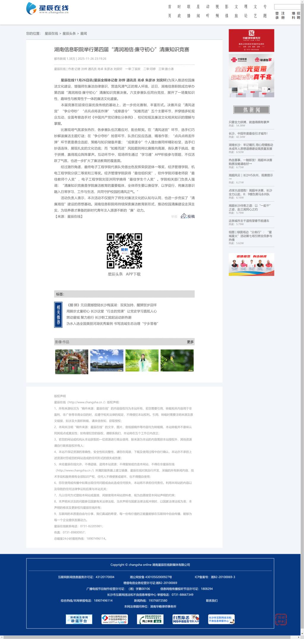 11月26日,星辰在线发布《湖南信息职院举行第四届“清润湘信·廉守初心”清廉知识竞赛》