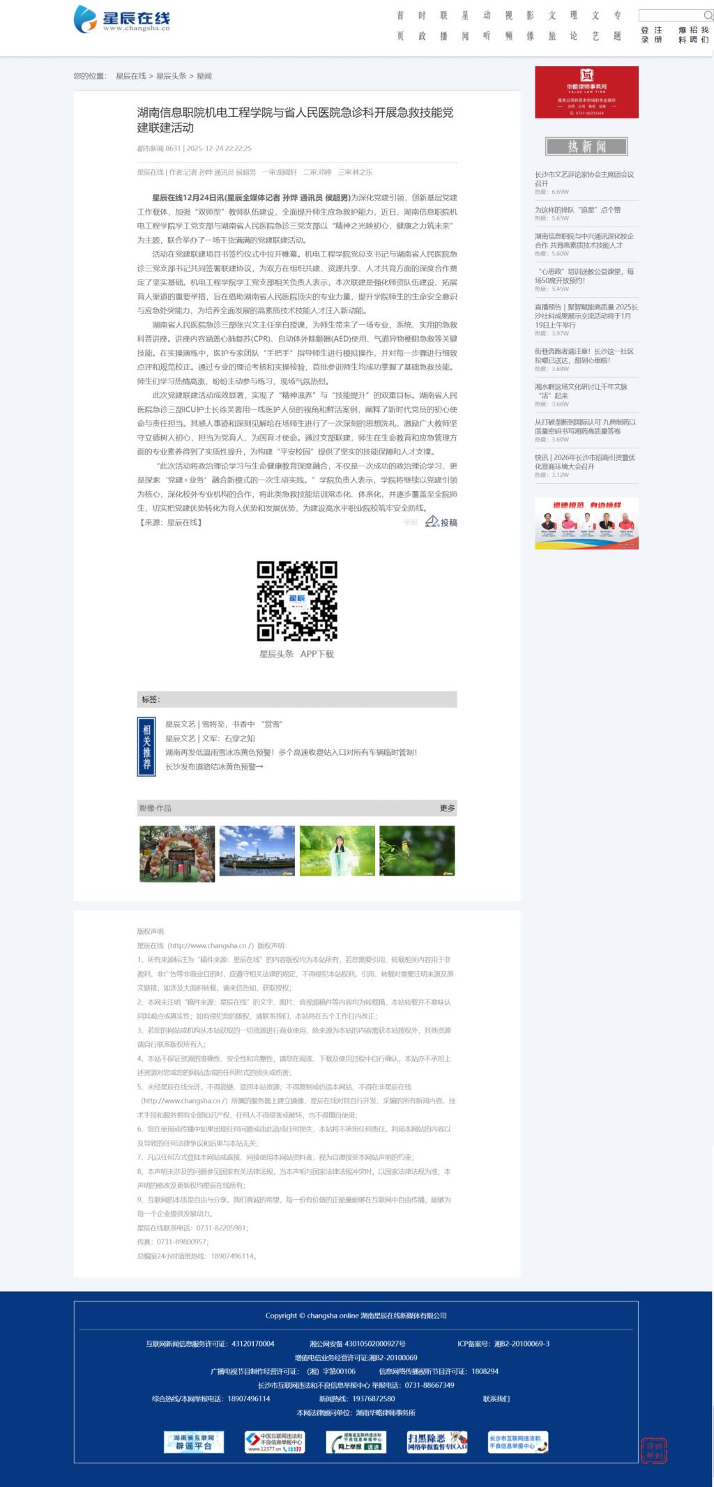 12月24日,星辰在线发布《湖南信息职院机电工程学院与省人民医院急诊科开展急救技能党建联建活动》