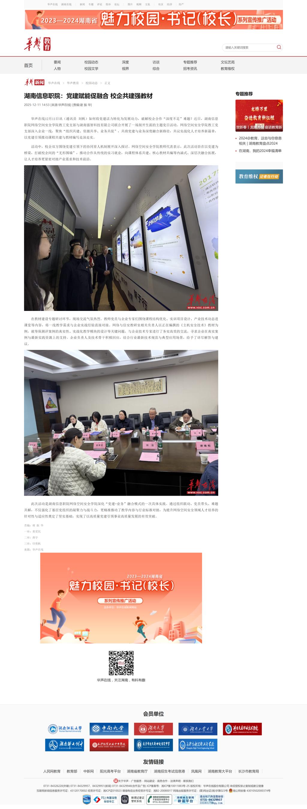 12月11日,华生在线发布《湖南信息职院:党建赋能促融合 校企共建强教材》