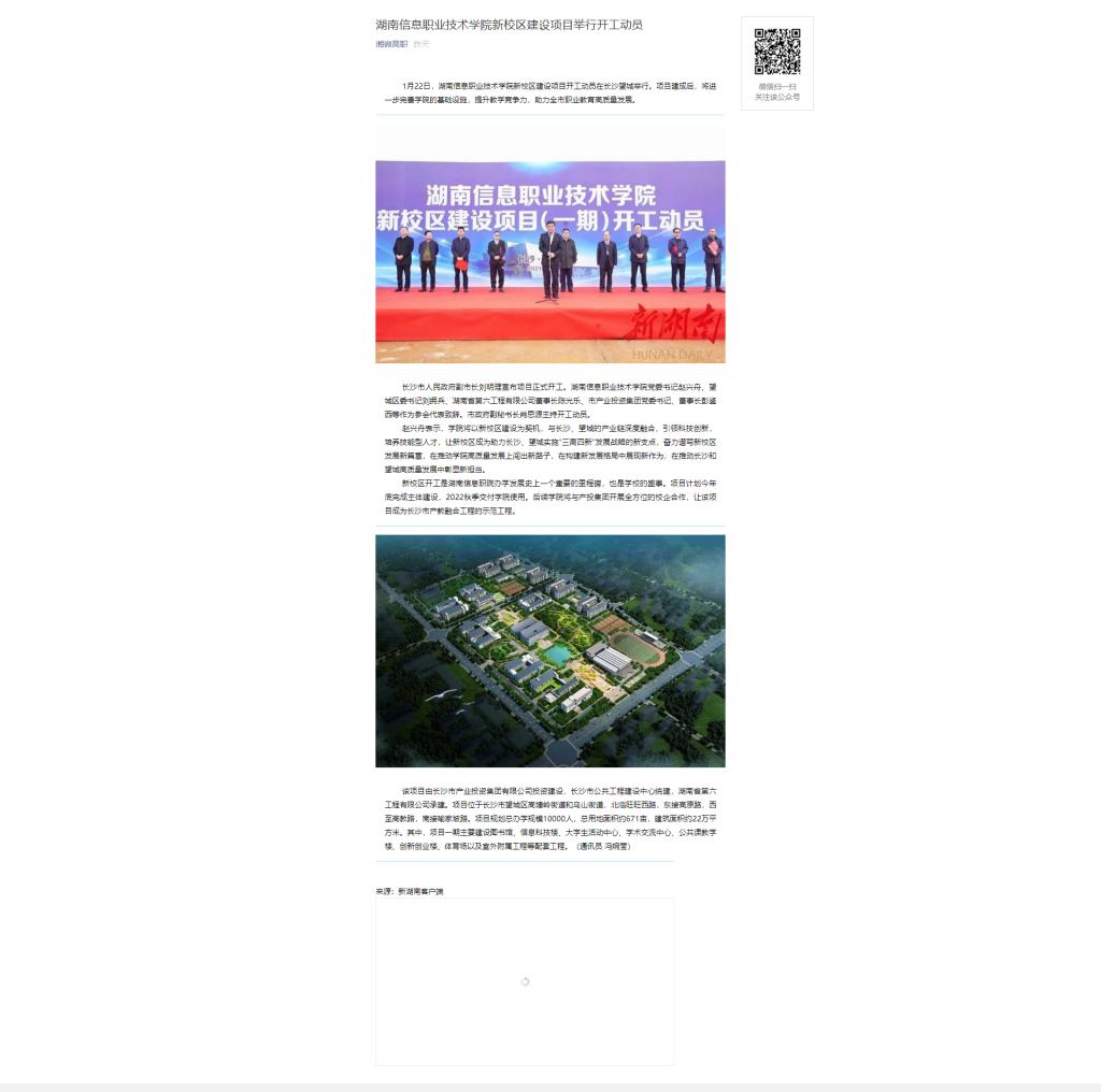 1月25日,“湘微高职”微信公众号发布《beat365官方网站新校区建设项目举行开工动员》。