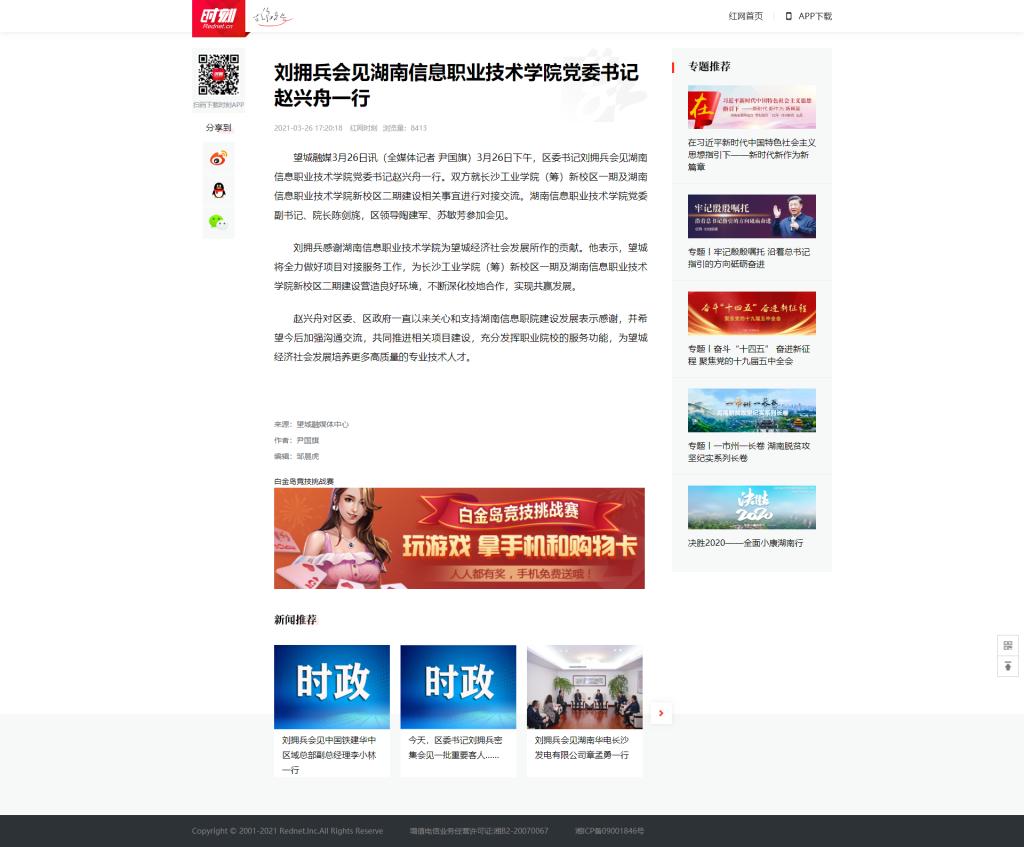 3月26日,红网发布《刘拥兵会见beat365官方网站党委书记赵兴舟一行》。