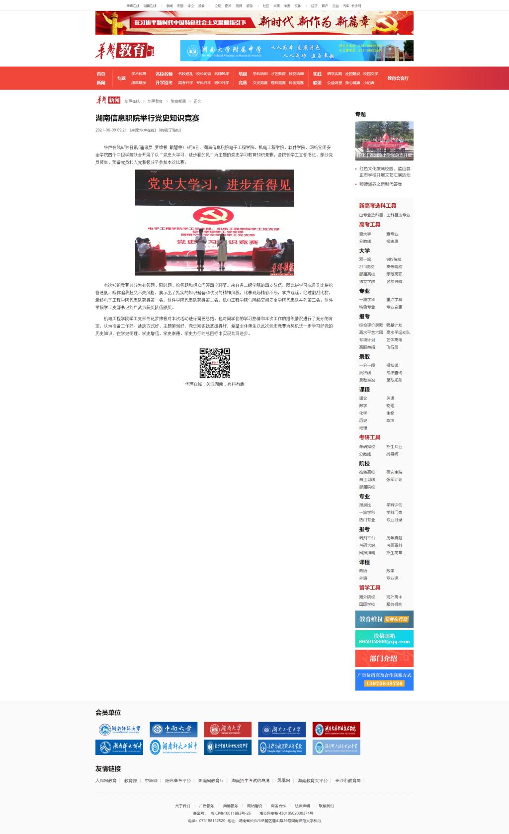 6月9日,华声在线发布《湖南信息职院举行党史知识竞赛》。
