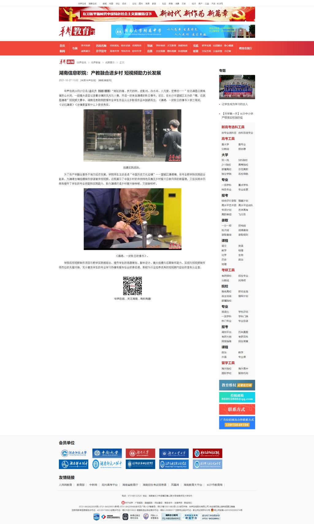 10月27日,华声在线发布《湖南信息职院:产教融合进乡村 短视频助力长发展》。