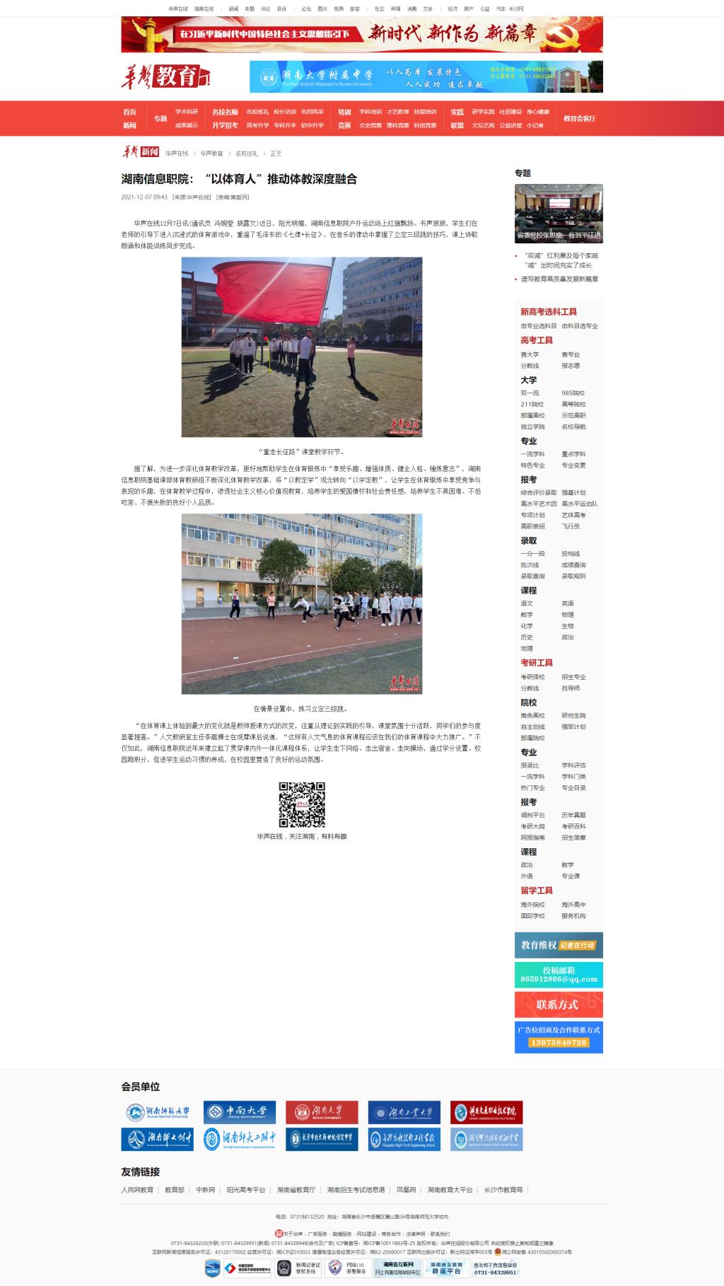 12月7日,华声在线发布《湖南信息职院:“以体育人”推动体教深度融合》。