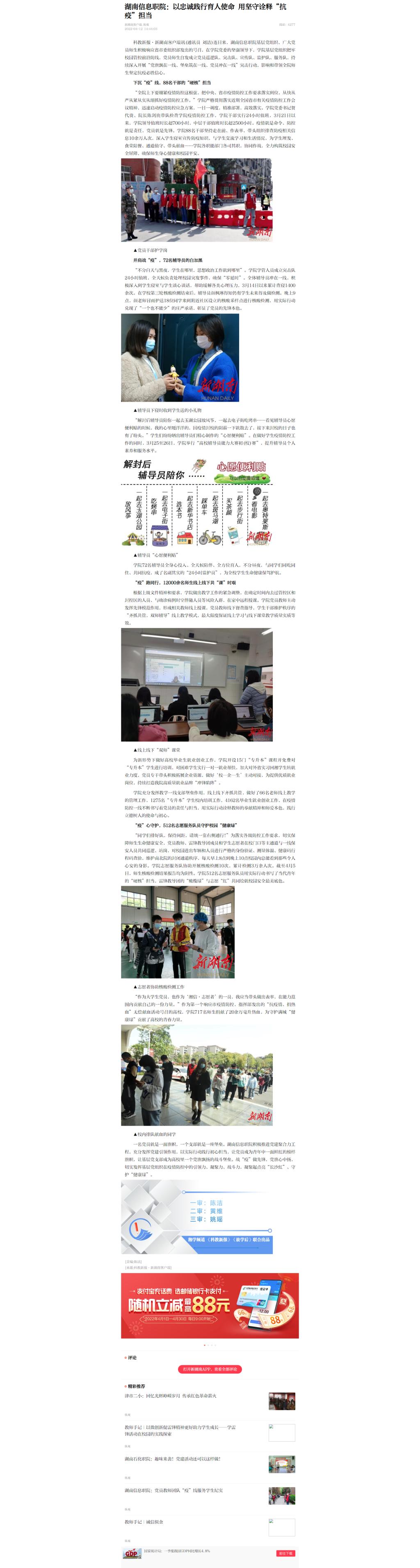 4月12日,新湖南发布《湖南信息职院:以忠诚践行育人使命 用坚守诠释“抗疫”担当》