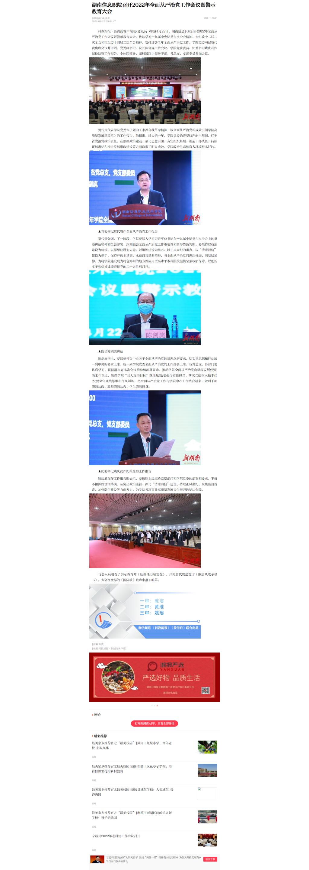 4月22日,新湖南发布《湖南信息职院召开2022年全面从严治党工作会议暨警示教育大会》